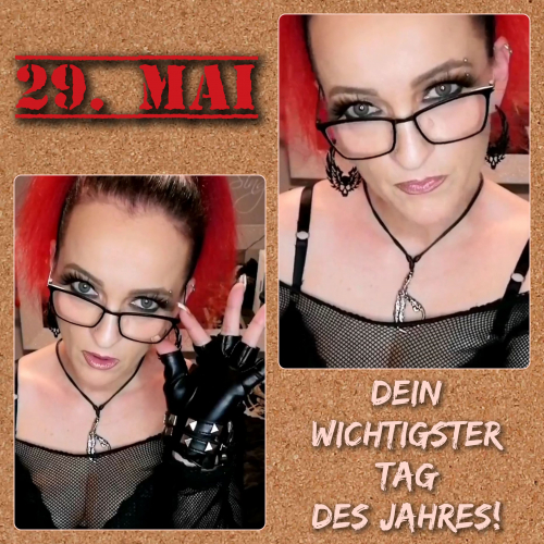 Am 29.05. ist der WICHTIGSTE Tag des Jahres, der wichtigste Tag in Deiner verdammten kleinen Welt. Du weißt was Du zu tun hast! Lass Dich auf die Knie sinken und genieße den meiner Macht über Dich. Gib mir was mir zusteht. Zolle Deinen Tribut an meine unvergleichliche Herrschaft über Dein Leben und Dein Schicksal!