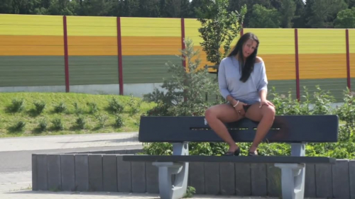 Am Strassenrand im Wind: Xara reibt sich ihre Pussy ganz verschämt, könnte das junge Küken doch jederzeit erwischt werden.