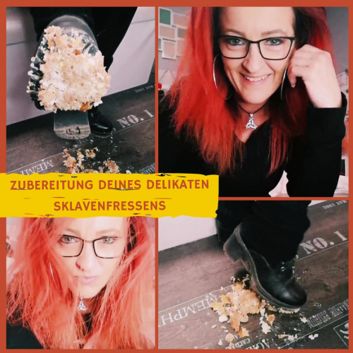 Und damit es auch schön matschig ist, trete ich mit meinen dreckigen Stiefeln noch schön darin herum! Aber das interessiert Dich Depp aber ja gar nicht mehr. Bääääh, jetzt hast Du kleiner dämlicher Drecksköter sogar noch eine Erektion. Ja wenn Du unbedingt willst... Da kann ich Dir wirklich nur noch guten Appetit wünschen, Drecksköter! Aber Deine leuchtenden Augen finde ich doch sehr anheizend dabei. Genauso leuchtend wie deine Augen, sollte nach Deinem Essen auch der Boden sein. Das wäre doch der passende Ausgleich für meine Mühen, nicht wahr?!